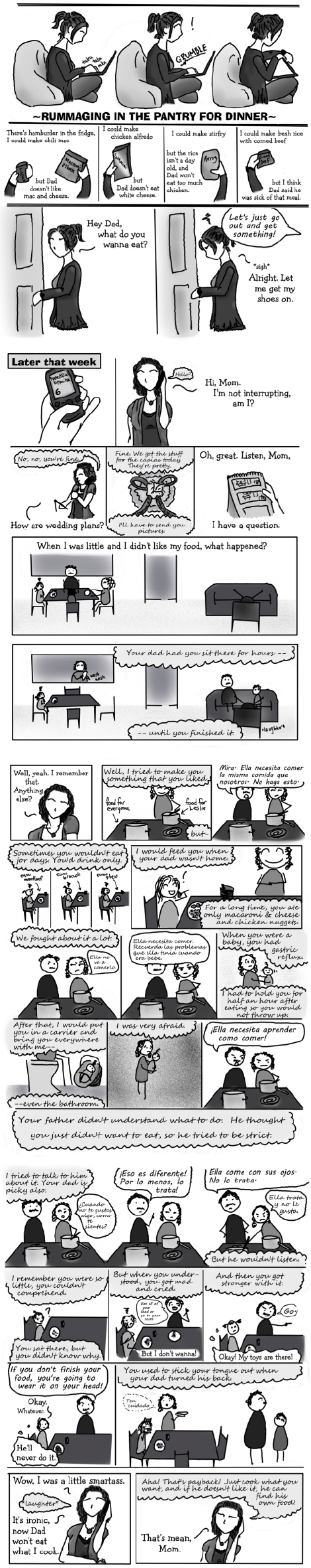 “Graphic memoir” from the mind of Leslie Salas: “I was picky. . . . And while Iāve slowly grown to expand my culinary horizons, I realized that I may not be the only picky eater in the family . . .”