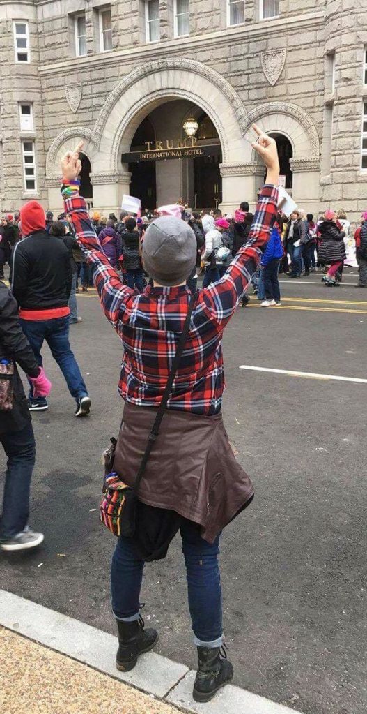 We’re Nasty Women? Someone put small locks on all of the porta-potties. Who’s nasty now? No matter. Several people in the crowds, male and female, arranged it so that the porta-potties opened (don’t ask me how) so we could use them. Respect Existence or Expect Resistance