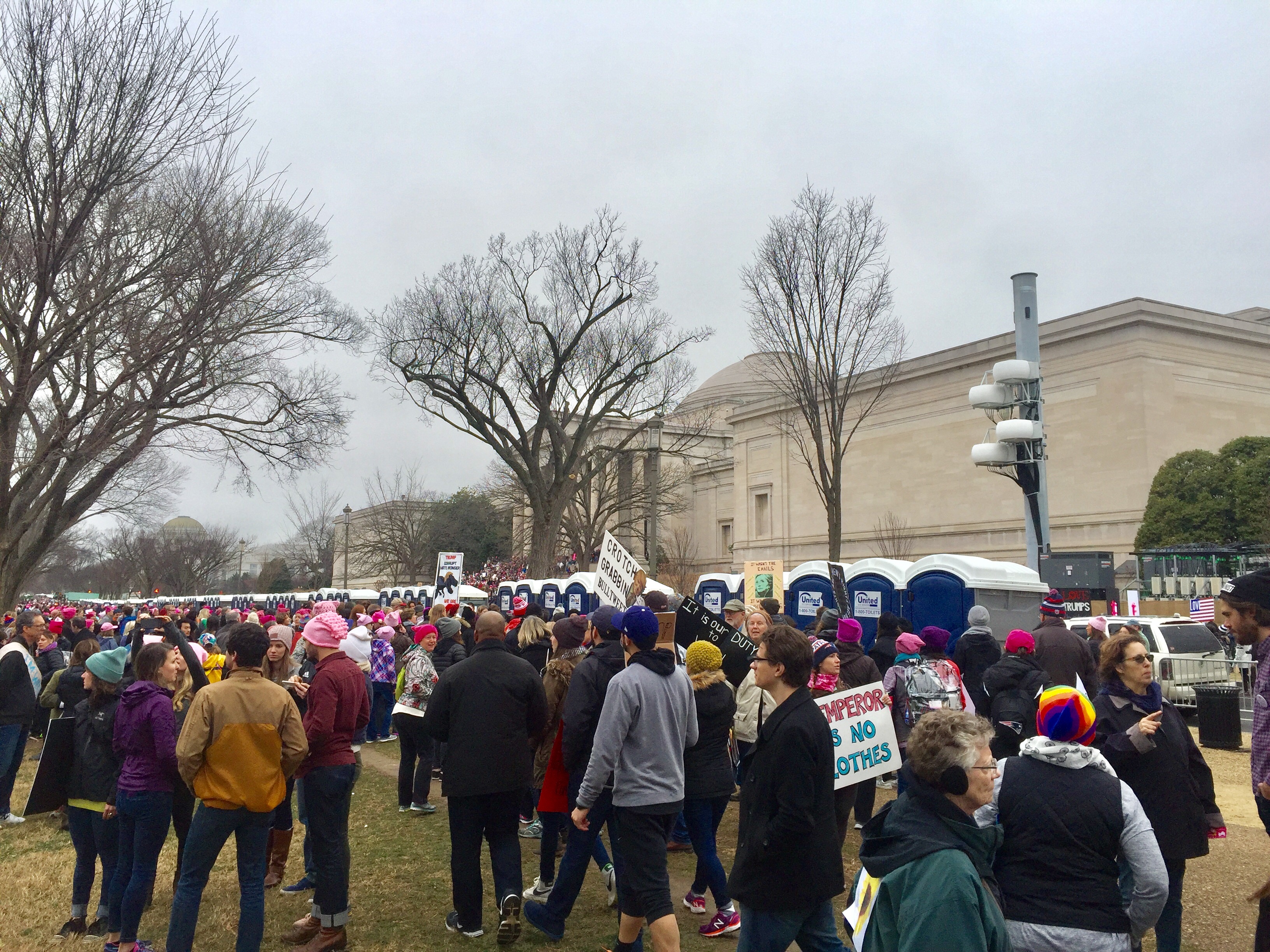 All over the world, sisters, mothers, daughters, grandmothers, nieces, neighbors, and friends– and some of their men– stood together to say “Not today, patriarchy!” We were lucky enough to be in D.C. at the heart of it all, part of a human hive humming through the jam-packed streets, shoulder-to-shoulder and hip-to-hip. Democracy looks like THIS!