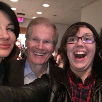 A few minutes after being let in, we got this surprise: Sen. Bill Nelson. Carly and Shea let me sneak in on their selfie.