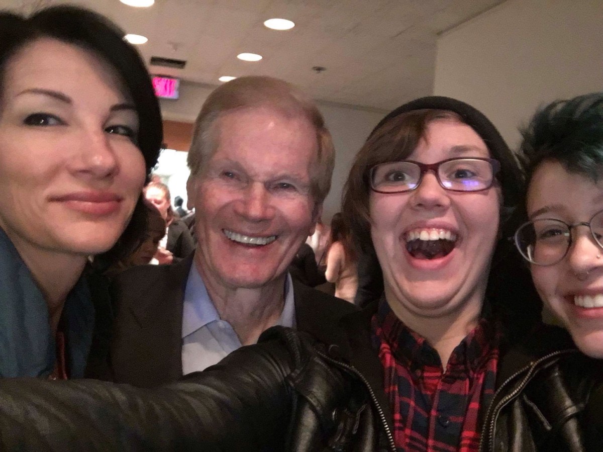 A few minutes after being let in, we got this surprise: Sen. Bill Nelson. Carly and Shea let me sneak in on their selfie.