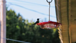 Perhaps the best moment, however, was when the hummingbird slipped past us while we were looking up and sipped, unconcerned, from the sugar water feeder. Just three feet away, it ignored us; we were nearly as removed from its concerns as the sun itself. None of the birds were affected by our partial eclipse, to my relief. Cardinals and finches snatched seeds, hummingbirds fought in huge, speeding arcs, and the light dimmed less than it would if the storm had been of a different type.