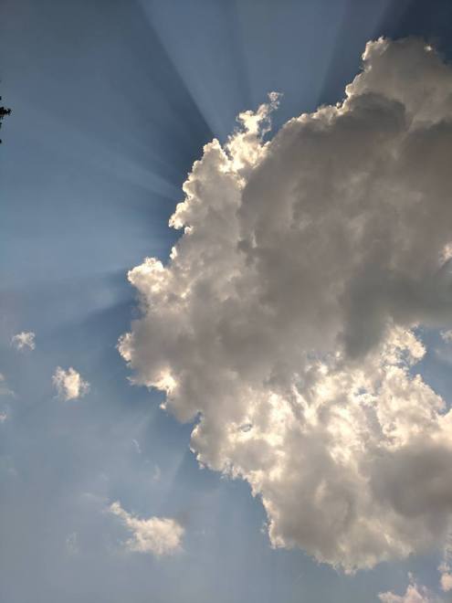 I would normally say the sun’s rays peeking out from behind this fluffy cloud was beautiful. But I was pissed. Big giant open sky–and then this one cloud is in our way of viewing the sun.