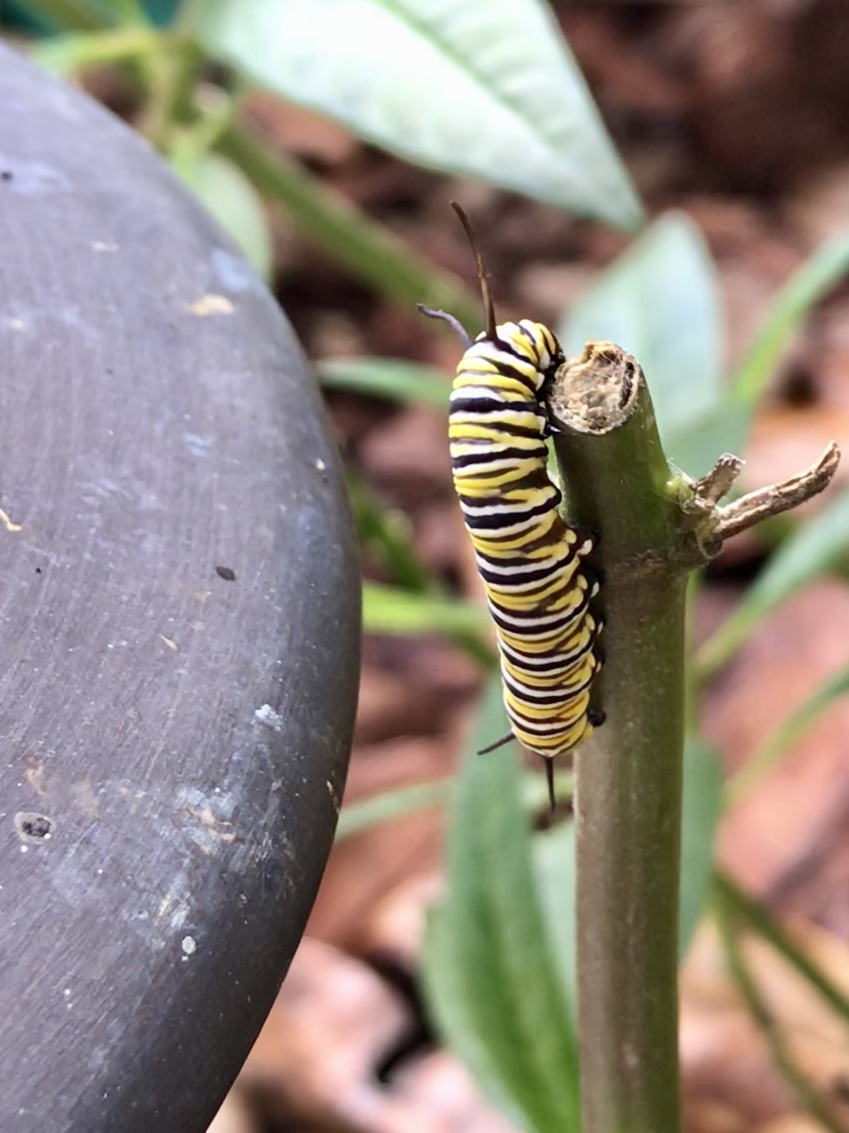 ‘Monarch Caterpillars roaming Mother G’s Milkweed B and B’