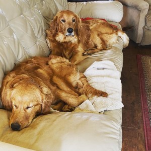 It’s Day 2 of Skye’s heat/the doggy separation, and we’re doing reasonably ok. The dogs look at us and each other with confusion and sadness. How could we do this to them? Duncan has the What did I do? look. Skye has the What did you do? look. Both are pictures of betrayal.