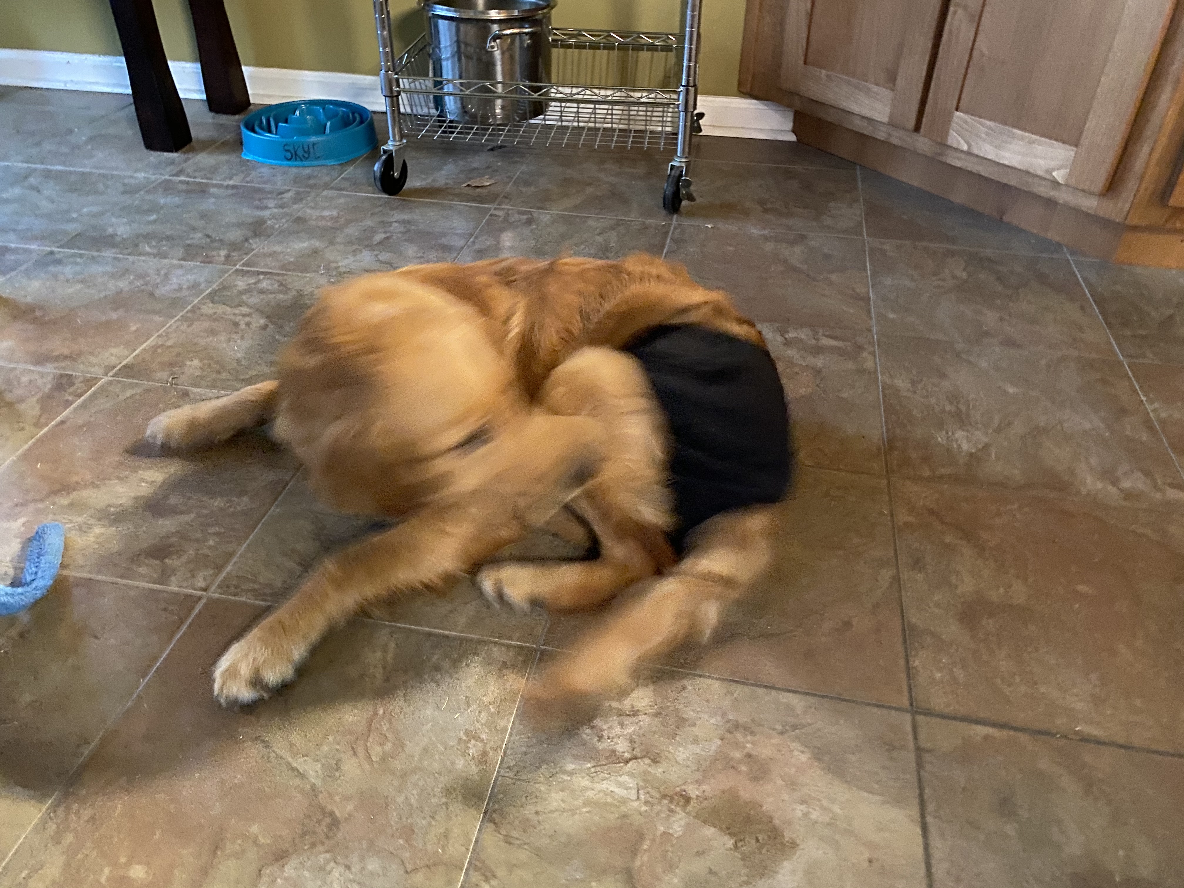 The emergency? We just acquired an un-neutered male dog, have had him only three nights, and our baby 28 week old Golden Retriever girl, Skye, just went into heat.