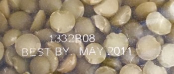 Yesterday while rummaging through the pantry, I found a partial bag of split green peas hidden in a basket. I’d rolled the open end down and taped it with packing tape. I checked the date—BEST BY MAY 2011. I got my iPhone out. My husband said, “You’re not going to take a picture of that and post it.”
