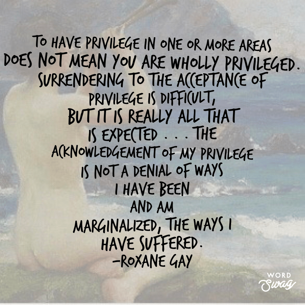 • Thank you for noticing the mistake, altarice. The actual quote in the photo is correct–the word Roxane Gay used is “surrendering.” The excerpt had a typo, which I’ve fixed. Your comment is much appreciated!