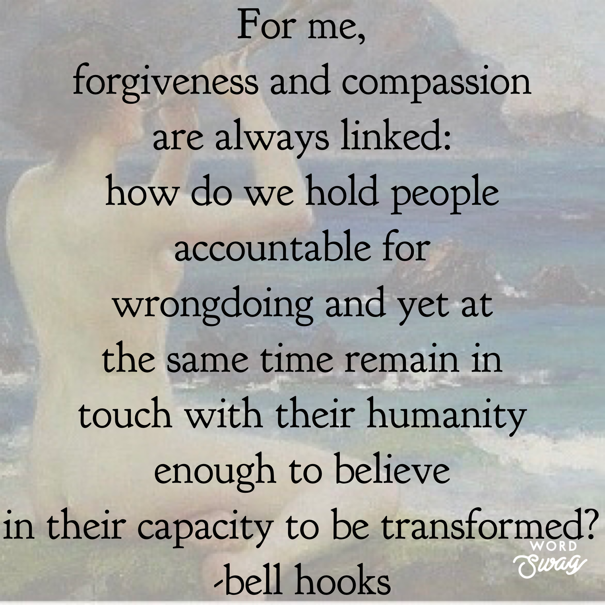 Tagged as: bell hooks, compassion, daily dose of wisdom, empowered women, empowering women, female empowerment, feminist quotes, forgiveness, quotes by women, Radical Love, strong women, What She Said