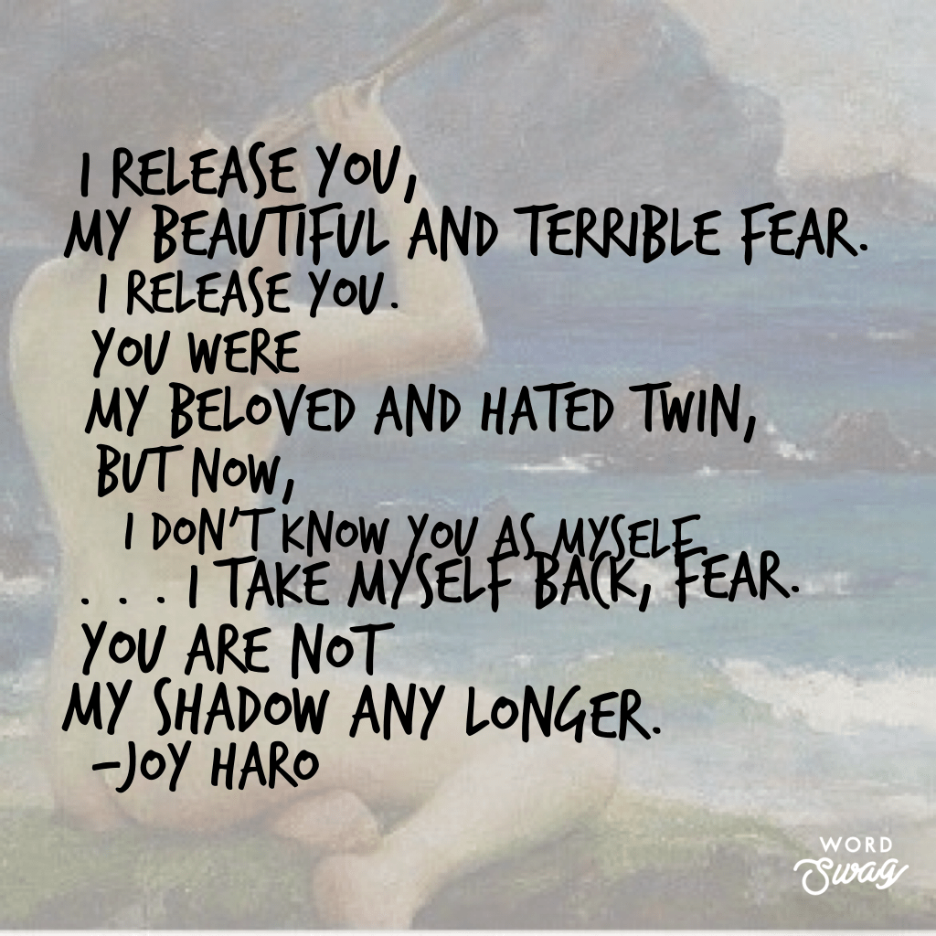 Tagged as: daily dose of wisdom, empowered women, empowering women, fear, fear never wins, female empowerment, Joy Haro, letting go, national poetry month, quotes by women, What She Said