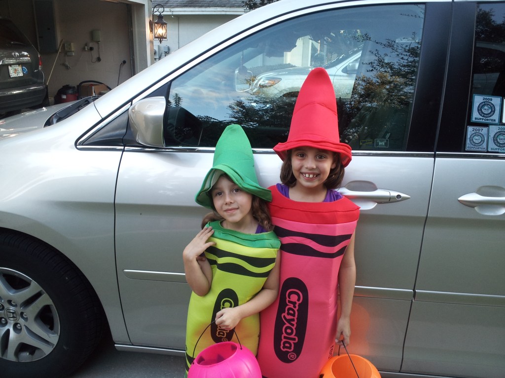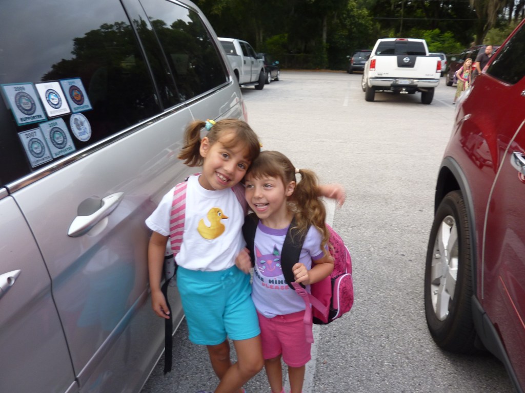 And honestly, that silver van was pretty tricked out. It had sliding back doors and a trunk that opened with the touch of a button on the key fob. It had a sun roof and a built-in entertainment system with headphones. It had a navigation screen. My friend called it “The Starship Masiello” and the name stuck. I took my kids to hundreds of baby classes and play groups in that van. I drove both girls to and from school from preschool through 9th grade. We listened to all the Vacation Bible School, Wiggles, Kindermusik, Gymboree, and Disney songs. The van was the impromptu background for those “Oh shoot I didn’t get a photo of you before we left the house” moments. I remember bringing both girls grocery shopping, and when we headed back to the parking lot I would open the sliding doors with my key fob and yell “Put away the most important packages first!” as they’d run to the van, laughing. I carted around Girl Scout cookies and crafting supplies, after-school snacks and, eventually, my daughters’ friends. It finally started to show its age after around eight years of pretty hard driving to Disney, my mom’s house in Sarasota, the Disney Cruise line port, and in all our suburban stop-and-go traffic. So in 2013 it was time for a replacement. My eldest was ten and my youngest was eight. Life wasn’t going to change much, so just got another silver Odyssey.
