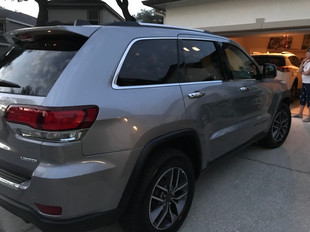 Yes, my friends, it is a Jeep Grand Cherokee, and I love it. It’s silver with a black interior. I think of it as Liberty, grown up. I like the silver because it holds on to some of what the van once was. I’m okay with the dark interior because I’m used to the Florida sun and the steering wheel feels like butter. I’m worried about it only seating five because letting go of the ability to cart everyone I love around town is hard. But taking multiple vehicles will allow us a certain degree of flexibility to arrive when we want, leave when we want, travel as we wish. We can be a little more independent of each other. It’s a wonderful transition car–big enough to move my kid into a dorm a year from now, small enough to drive away and not feel like the seats are far too empty. And it has a fabulous sound system, well-equipped to play my new Spotify playlist: Two Decades of Car Songs–without a single Wiggles tune in the mix.