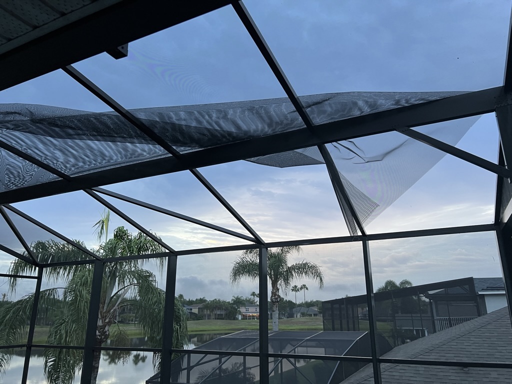 The rest of the week I called every screen repair place I could find online. “No, we don’t do two-story screen repair.” Everyone gave me the same line—not right now, there’s a shortage on everything: labor, screen, railings. I felt sad and lonely again. It was fine, of course. Just a screen over the enclosure of a pool home. Who can complain? Bonus, the bugs hadn’t really even noticed yet.