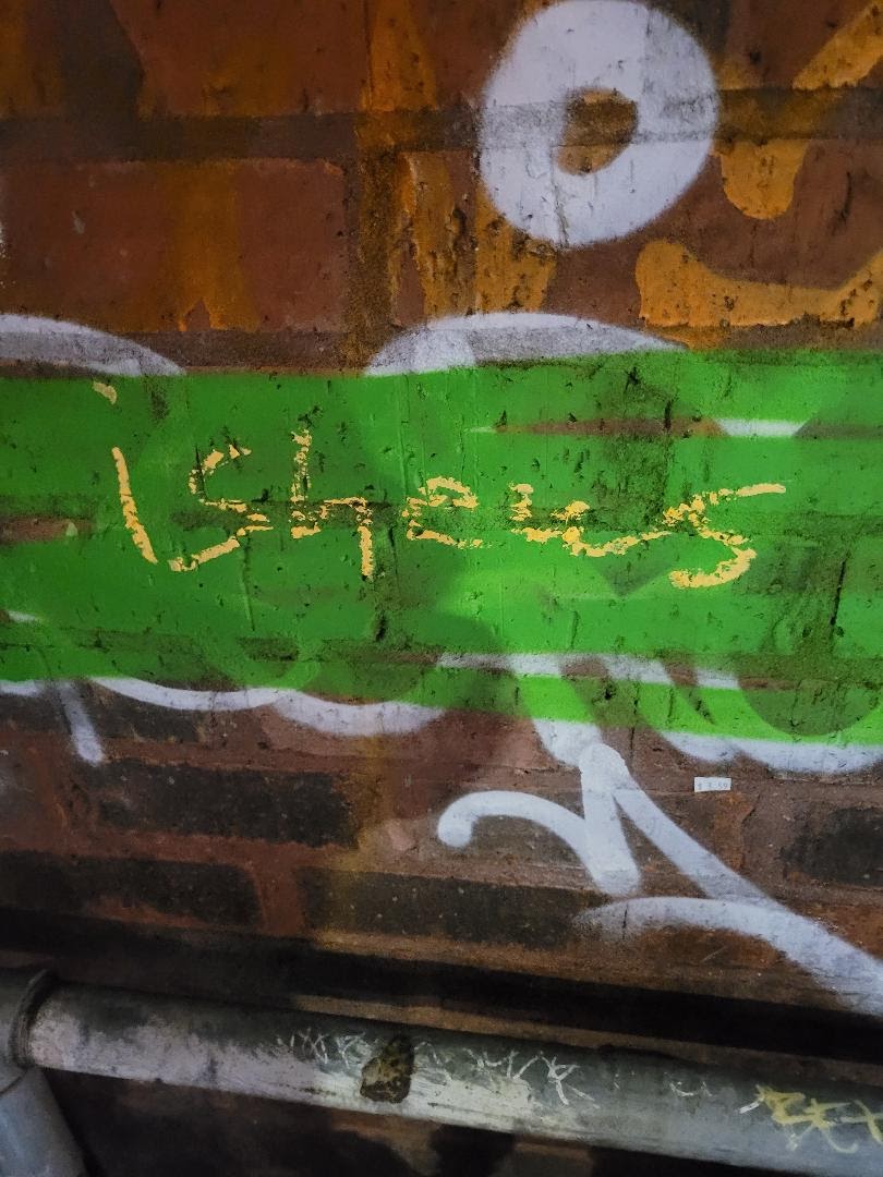 There’s occupied outdoor seating along the curb of Frenchman, and live music from the open fronts of bars. When I stopped to smoke in the entrance of an alley, I studied the graffiti on the old red brick walls. A rough green patch of paint had the word, “ishews,” scrawled in yellow chalk. Ishews! The spelling was raw, complicated, and surprisingly appropriate. I got ishews, you got ishews, we all got ishews, right? A few days later, I stopped to look for ishews again, and it was painted over in plain red.