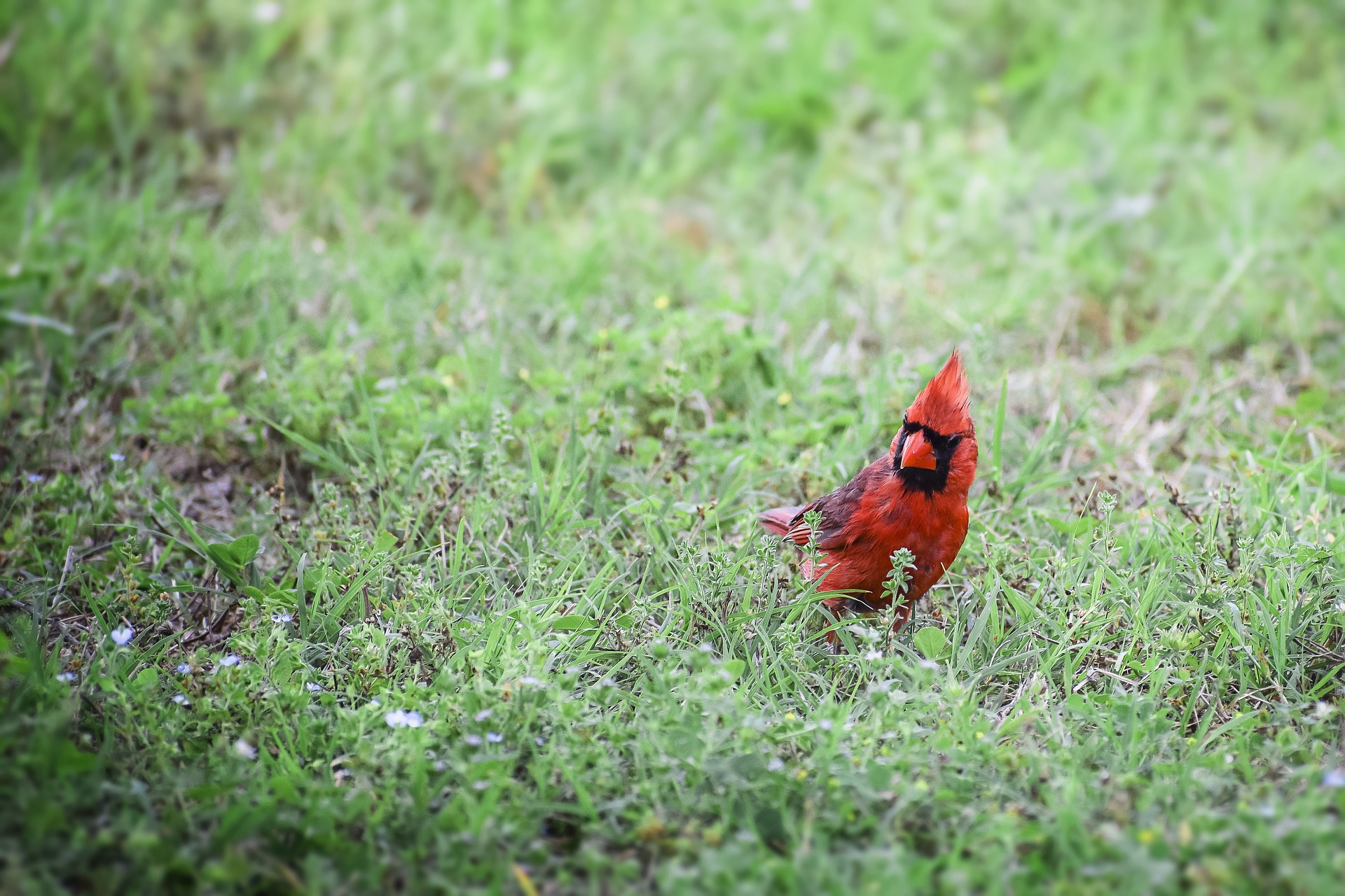 All of these suggestions are linked, but this one is particularly connected to the lawn issue. Americans are oddly obsessed with “perfect lawns,” which has led to the use of a whole lot of herbicides, pesticides, and chemical fertilizers. In my neighborhood, lawn services drive around and, seeing an “imperfect” lawn like mine, leave flyers offering their services. Lawns that have been treated sport signs warning you to keep your dogs and children off so they don’t get poisoned. My smaller dog is 63 pounds, which is about 672 times the size of a Northern Cardinal. If my dog could get sick or even die from the chemicals on a lawn, what could happen to a bird that lands there