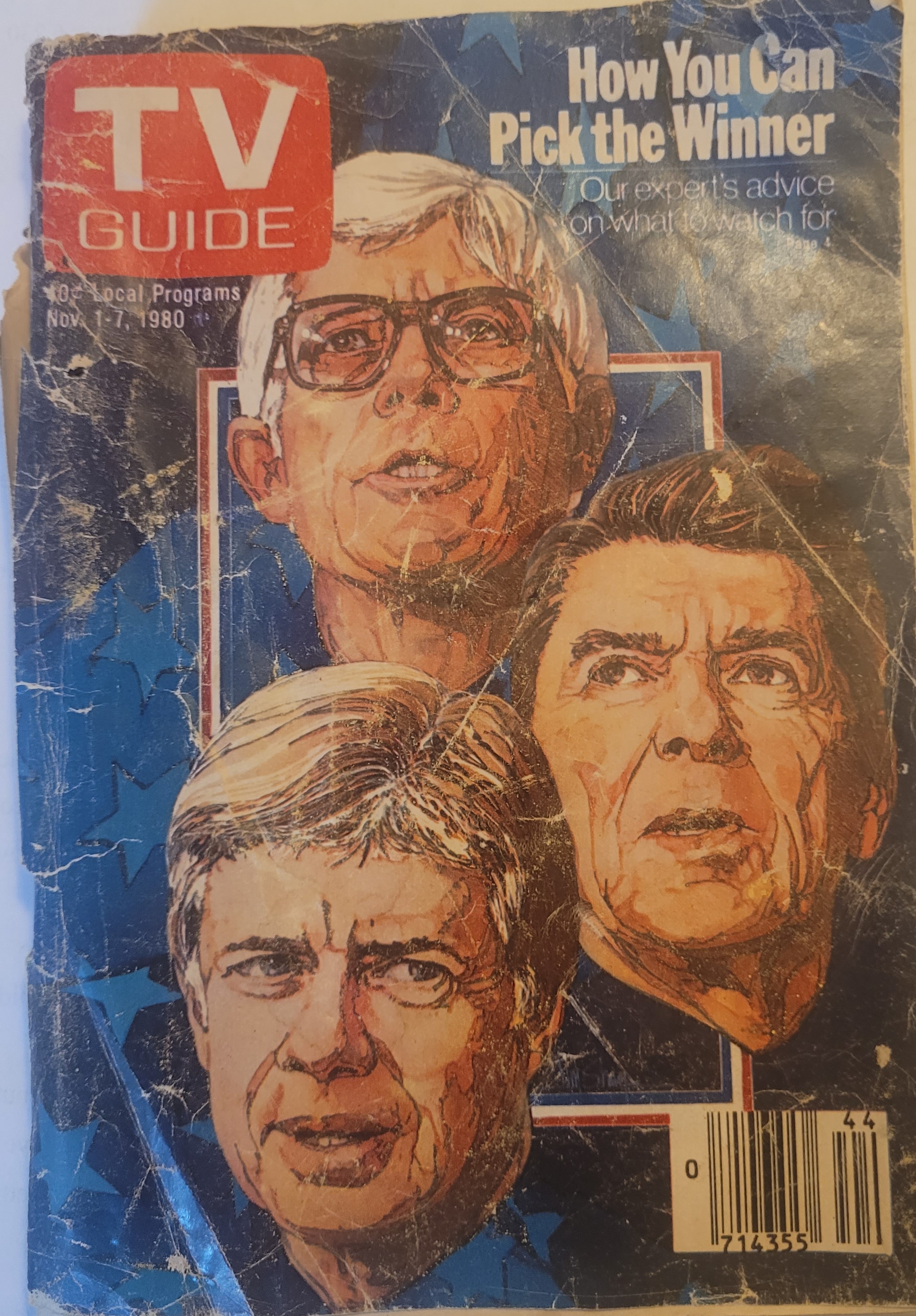 Cue February 1980, when I turned eighteen and became a legal adult, only three months away from high school graduation. It felt like kismet that it was a presidential election year. Voting was important to me because I knew women had to fight for the vote, and it had taken more than one hundred years before all women had the right. I went to the courthouse and registered, though I don’t remember if I registered as a Republican, Democrat, or Independent. I do remember how I ultimately voted, and what I saved to commemorate the occasion, Issue #1440 of TV Guide, November 1, 1980, its cover featuring images of the three presidential candidates: President Jimmy Carter, challenger Ronald Reagan, and third-party candidate John Anderson.
