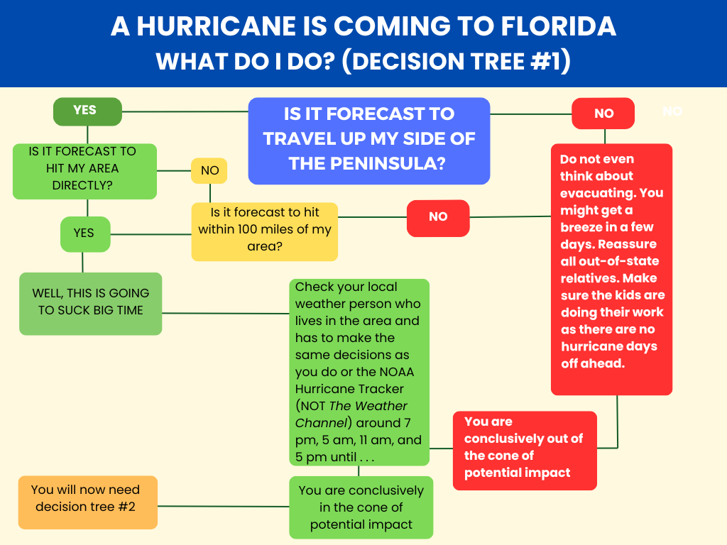 So on Sunday October 5th, here was the hurricane-decision tree, and we were on the green side: