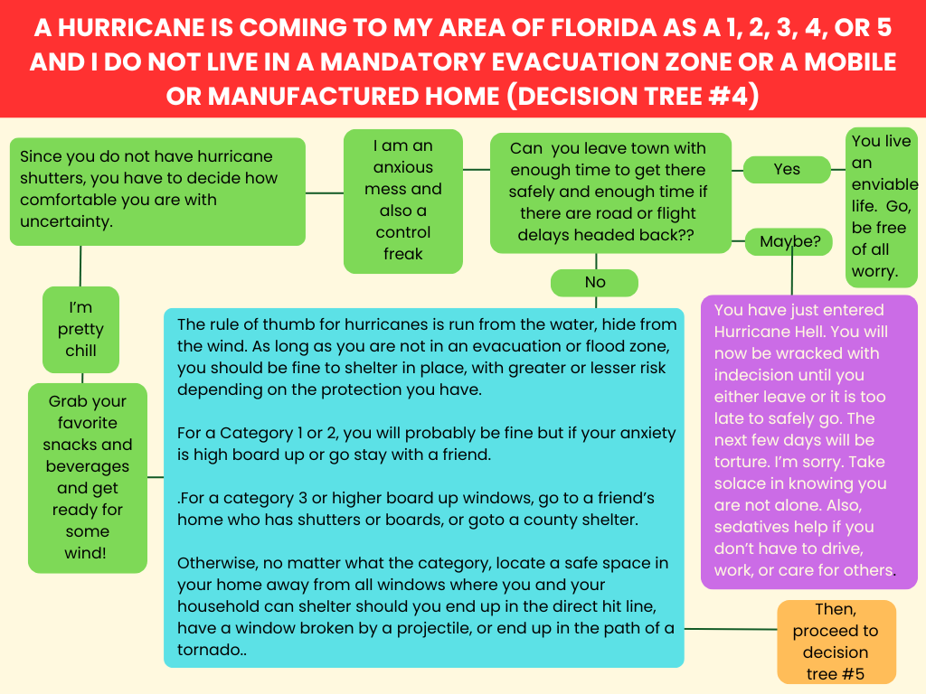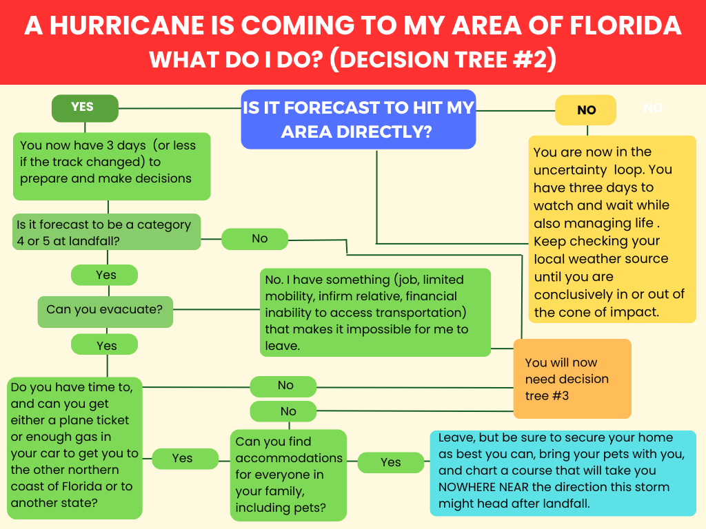 Nevertheless, staring down a category 3, decisions had to be made, and most people on our coast were on the left side of the chart, leading almost completely away from decision tree #2 into decision tree #3.