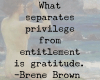 What separates privilege from entitlement is gratitude. –Brene Brown