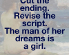 Cut the ending. Revise the script. The man of her dreams is a girl.- Julie Anne Peters