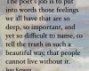 The poet’s job is to put into words those feelings we all have that are so deep, so important, and yet so difficult to name, to tell the truth in such a beautiful way, that people cannot live without it. –Jane Kenyon