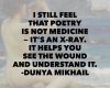 I still feel that poetry is not medicine–it’s an X-ray. It helps you see the wound and understand it.