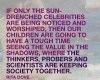 If only the sun-drenched celebrities are being noticed and worshipped, then our children are going to have a rough time seeing the value in the shadows, where the thinkers, probers and scientists are keeping society together. –Rita Dove