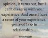 I can disagree with your opinion, it turns out, but I can’t disagree with your experience. And once I have a sense of your experience, you and I are in relationship…